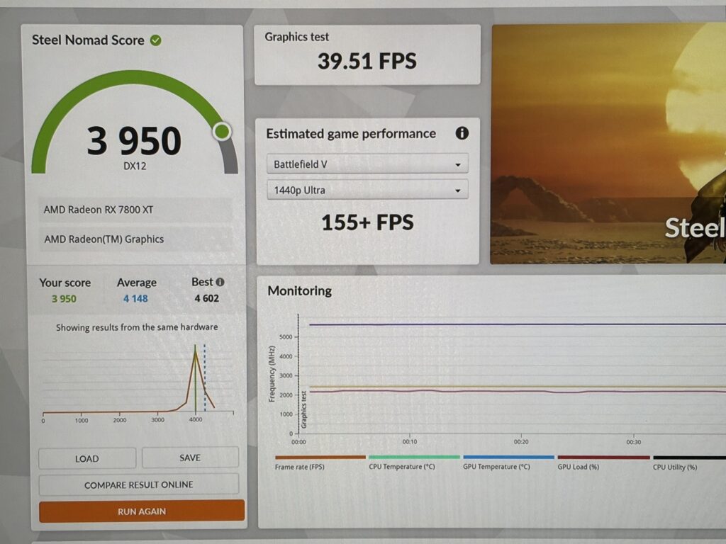 AMDの場合、前世代である、RX7000系のハイエンドであるRX7900XTよりも現行世代であるRX9000系のほうがおおむね高スコアであることがわかります。RX7900XTもだいぶ安くはなってきましたが、あえて積極的に選ぶ理由はないように思います。また、ほぼ終売といったこともあり、選択肢もかなり限られてきています。ただし、しいて言えばVRAMが20GBというところ。ここに魅力を感じれば、いまだRX9070系とほぼ同じ性能がありますので、レイトレを使わないということも含めて悪くない選択となります。また、特にRX7800XTは1ランクスコアが下になりますので、価格が9070系よりもかなり安いといった理由でもない限りはおとなしく9070系へ行ったほうが良いように思います。電力効率もよくなっているしね。