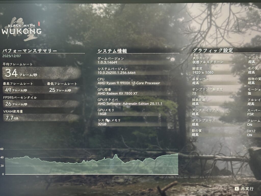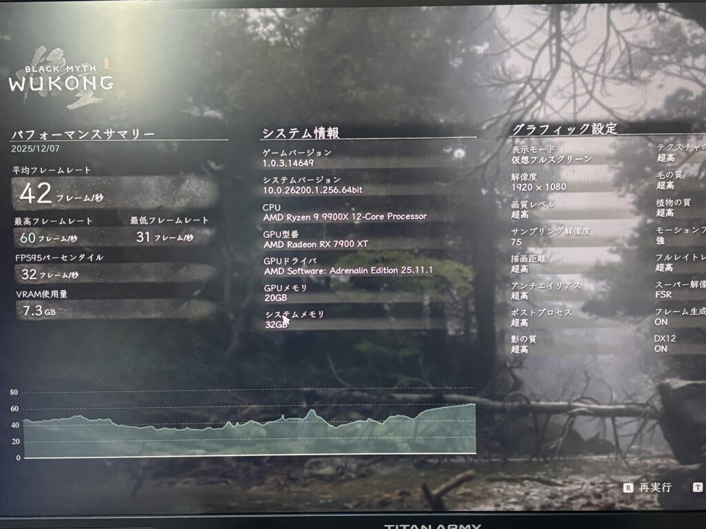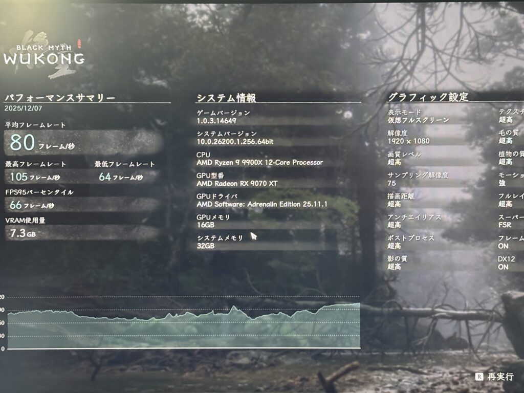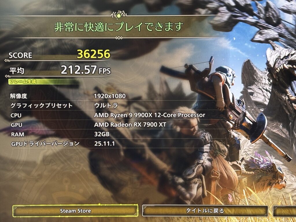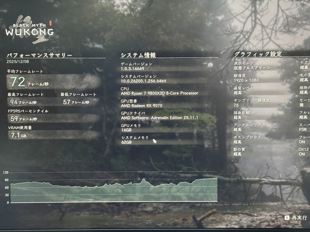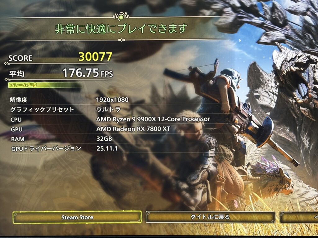 このモデルだけCPUがRyzen7 9800X3Dです。そのためFF14やモンハンベンチの数字が9070XTよりも高くなっている点に注意