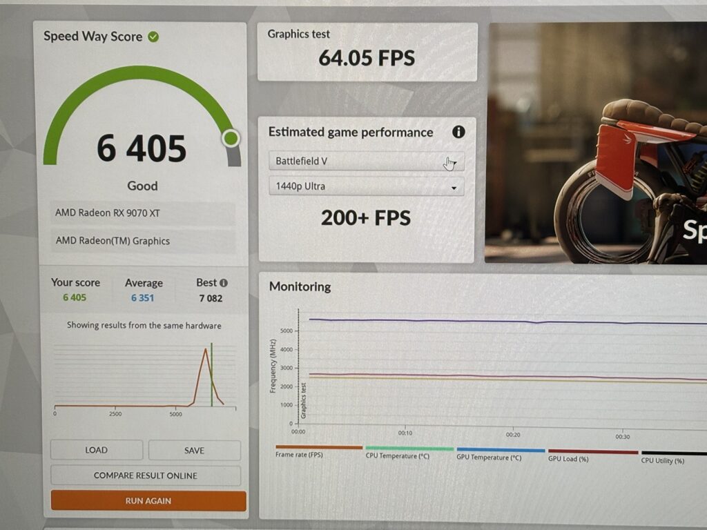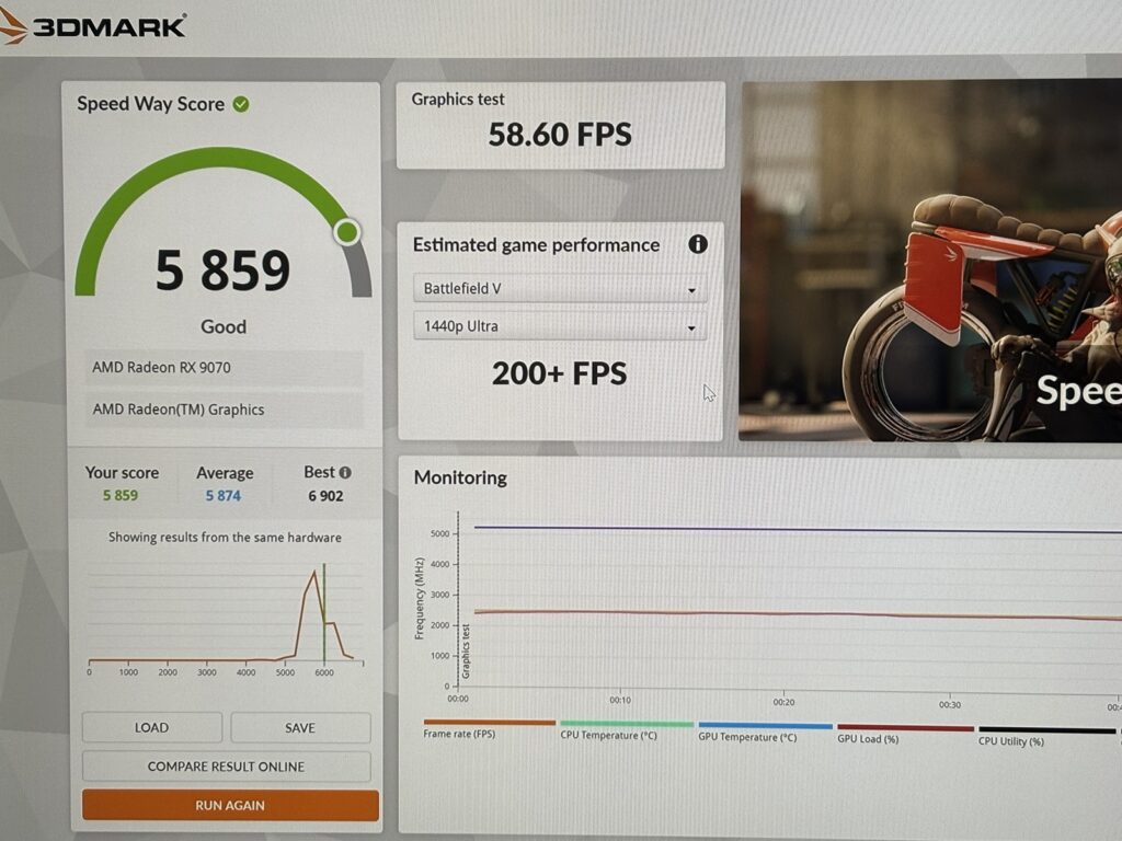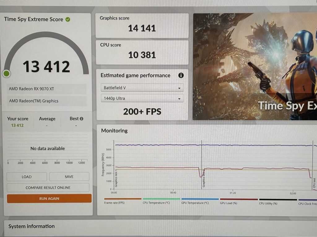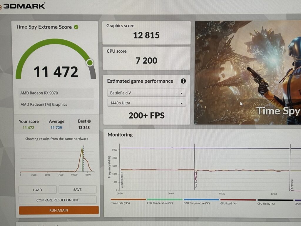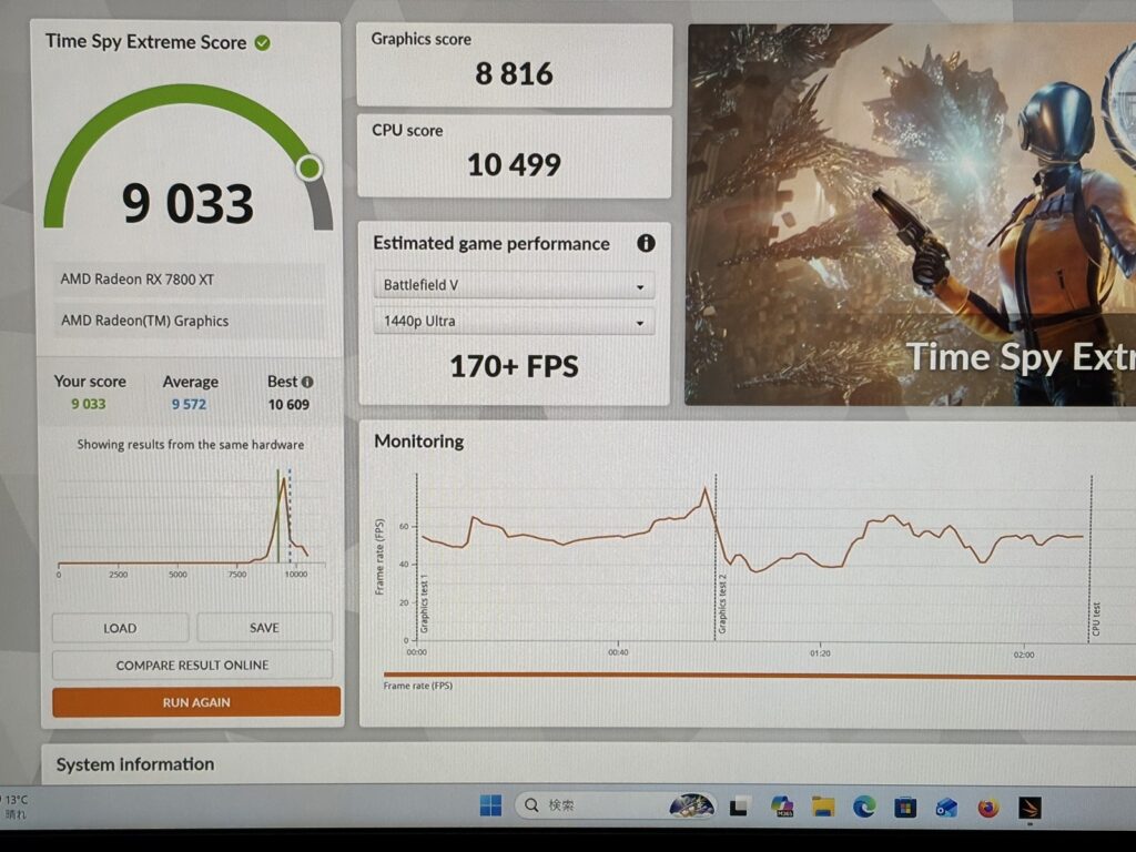 このモデルだけCPUがRyzen7 9800X3Dです。そのためFF14やモンハンベンチの数字が9070XTよりも高くなっている点に注意