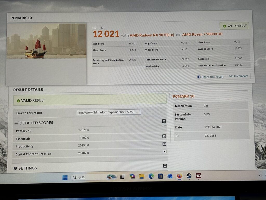 ちなみに、Ryzen7 9800X3D、RADEON RX9070搭載の手持ちゲーミングPCだと以下の通りでした。