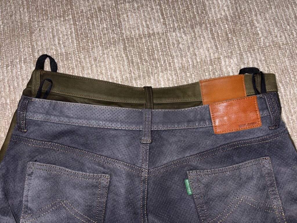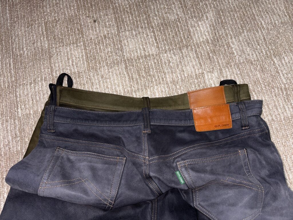 いずれにしてもエクスプローラージーンズはエグザリートレザーという超撥水レザーを使用していますので、多少の雨なら浸水することもなく、また、ライディング時にも座面が滑りづらいというレザーが持つ特徴も併せ持っています。したがって、長距離ツーリングでも疲れづらく、多少の降雨ならカッパいらずといった多くのライダーが不満と感じるネガティブな部分をほとんど感じない優れたアイテムです。